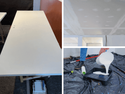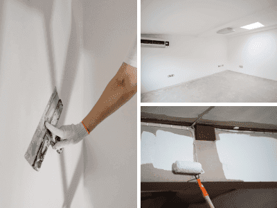 Correção de fissuras, preparação da superfície e pintura sem marcas nem manchas.